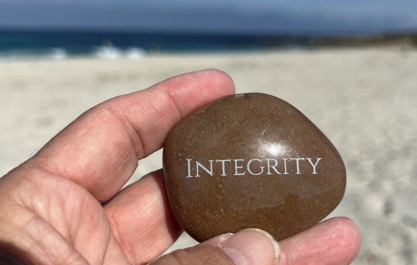 Piloting us to a perfect landing, Diana concluded with a simple, compelling ritual. We each received a stone inscribed with a word to inspire us over the coming year. Then nearly two hundred people rose and walked together to the beach. At the edge of the vast Pacific Ocean, we collectively shared our commitment out loud, to a “force greater than ourselves.”