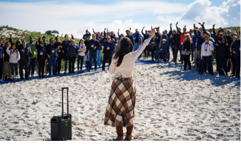 Diana and her team thoughtfully designed the meeting’s key events into a three-day arc. In the very first session, Diana also emphasized that we would be deliberating some thorny questions and welcomed disagreement. The schedule was loose, allowing for white space, walks on the beach, yoga in the morning, and informal conversations by the fire pit at night. The overarching message was: our important work could be supported only if we were taking care of ourselves in the process.